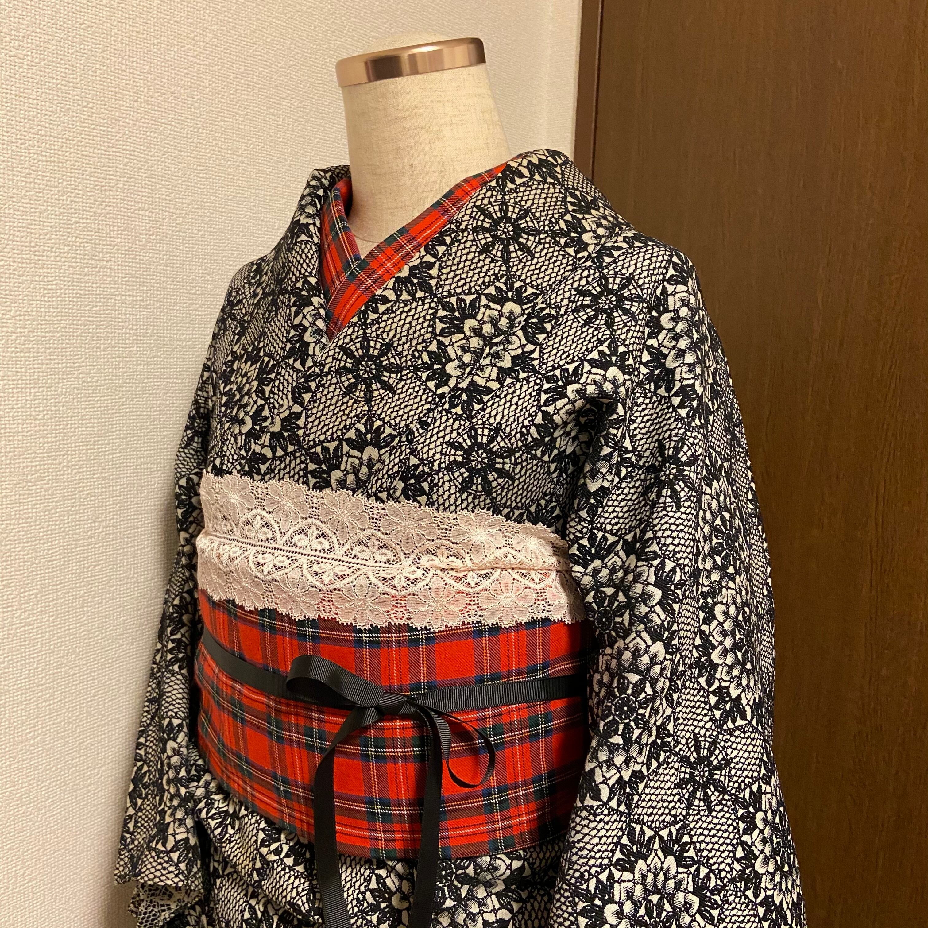 【★恋するイギリス半幅帯★いちご泥棒とタータンチェック】